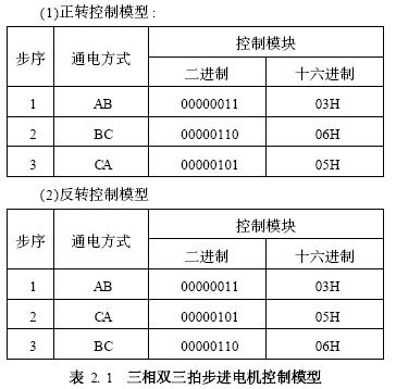 三相双三拍控制模型如表2. 1所示。