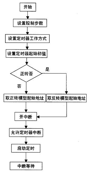 控制程序的设计方法是:通过标志位FLAG来判断电机的旋转方向,然后输出相应的控制脉冲序列;判断要求的脉冲信号是否输出完毕。